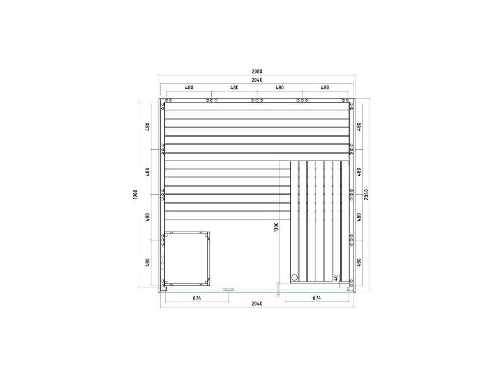 - vonkajšie rozmery: 2080 x 2060 mm, výška 2040 mm