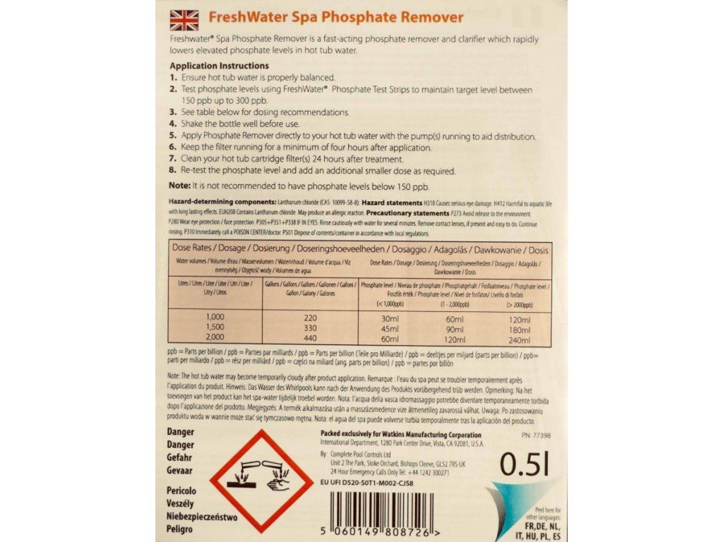 Odstraňovač fosfátov je čistič, ktorý rýchlo znižuje zvýšené hodnoty fosfátov v bazéne alebo vo vírivke.