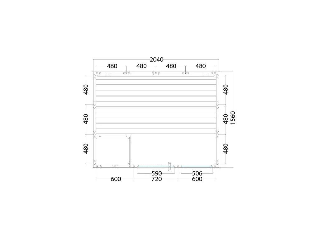 - vonkajšie rozmery: 2080 x 1580 mm, výška 2040 mm