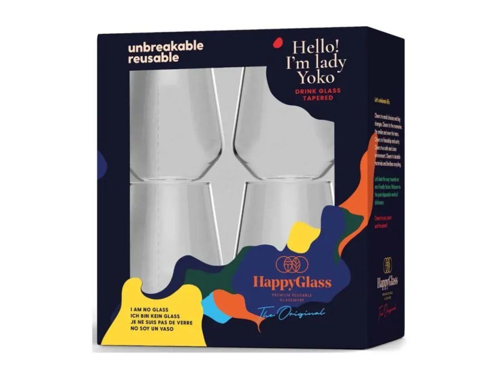 - HappyGlass dodáva rad vysoko kvalitných nerozbitných pohárov pre opakované použitie.