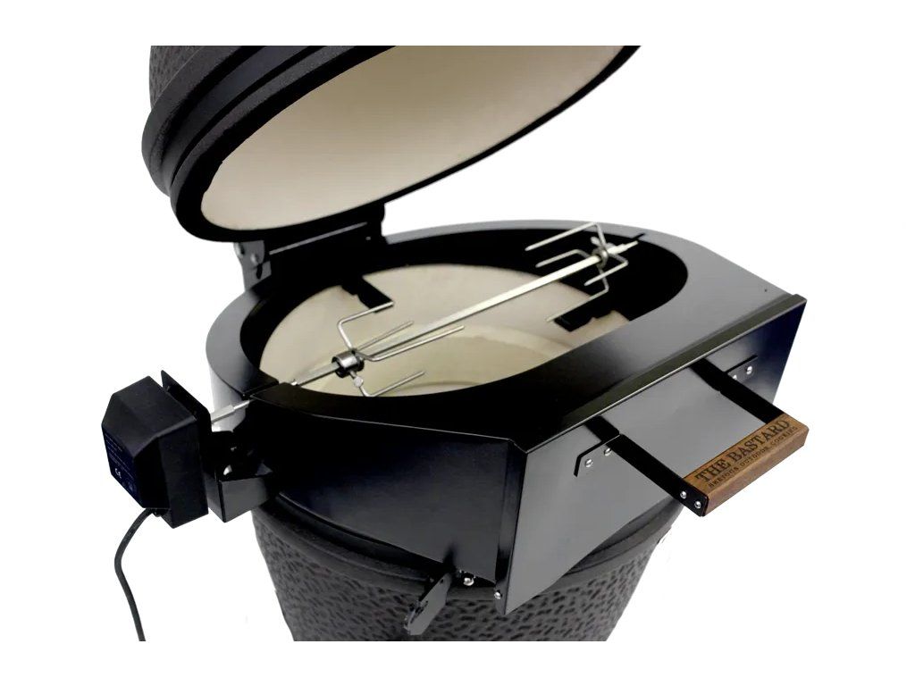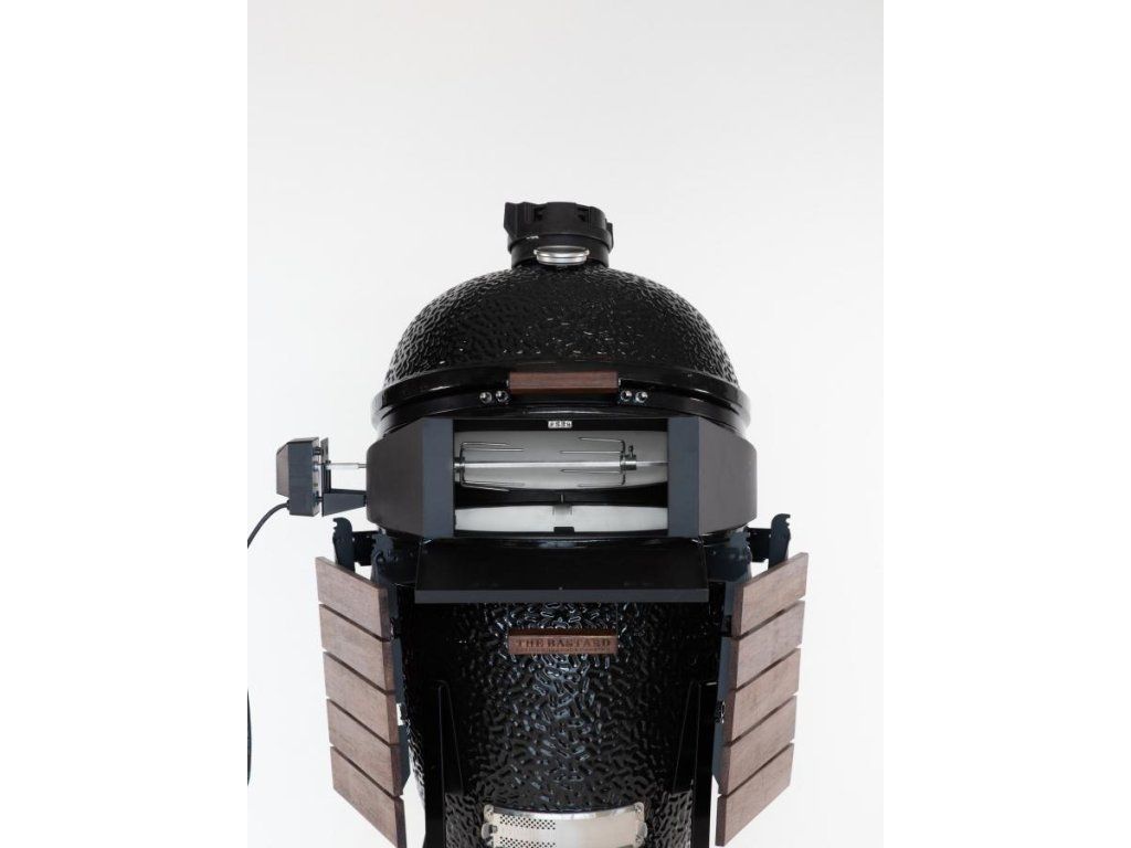 Dá sa použiť ako ražeň, aj ako pec na pizzu. Praktické dvierka vpredu udržujú kupolu zatvorenú, čo vám umožňuje prikladať k ohňu a udržiavať teplo. Grilovacia pec je dodávaná s vlastným, hrubým pizza kameňom. Vďaka tomu je ideálnym doplnkom na pizzu pre The Bastard gril. Odnímateľný gril má silný motor a veľké ihlice.