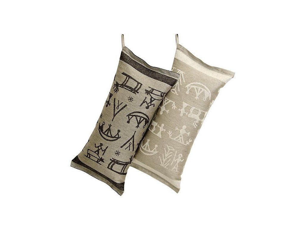 Jemné pranie bielizne pri 40 ° C v pomalom praní. Perte zvlášť. Vyvarujte sa aviváže a bielenia. Tvarujte za vlhka. Nesušiť v sušičkách. Výplň je 100% ohňovzdorné polyesterové vlákno. Farba prírodného ľanu sa pri praní zosvetlí. Uchovávajte mimo dosahu horúcich kachlí. Textíliu vo vnútri sauny nesušte.