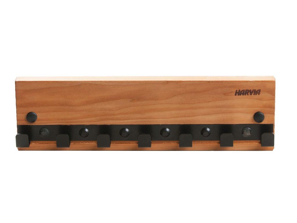 Vešiak na oblečenie Harvia Legend je elegantnou kombináciou dreva a čierneho kovu. Je vyrobený z tepelne upravenej osiky a doplnený detailmi z čiernej ocele. Všetky saunové doplnky Harvia Legend nesú ducha remeselnej výroby.